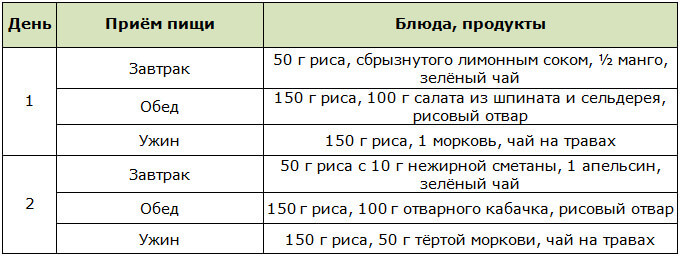 На второй день повторить всё заново. Меню можно оставить такое же или устроить разгрузочный день на рисе, который усилит эффективность и чистки, и похудения. Методика невероятно результативная, но тяжёлая: приготовьтесь к частым походам в туалет, лёгкому недомоганию и сильному чувству голода.
