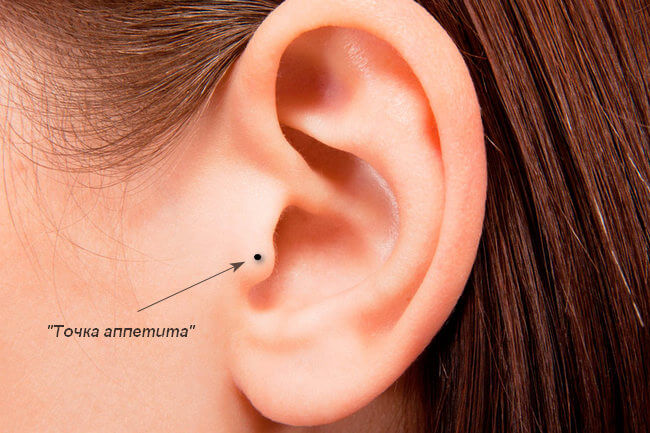 Точка на ухе, отвечающая за блокировку аппетита, где по методике Мухиной нужно делать прокол для золотой серьги