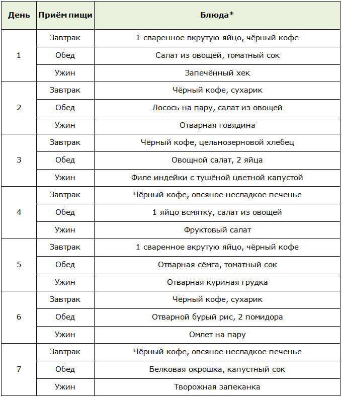 Если планируете похудеть на 10 кг за 2 недели, лучшего варианта, чем I этап Кремлёвской диеты, не найти. Он направлен именно на экспресс-похудение. В день придётся съедать всего 20 г углеводов, но зато на фоне интенсивных тренировок организм будет тратить собственные запасы. А потом для поддержания веса в норме можно воспользоваться и остальными этапами этой знаменитой голодовки. Подробное меню для неё на обе недели можно посмотреть в нашем обзоре.