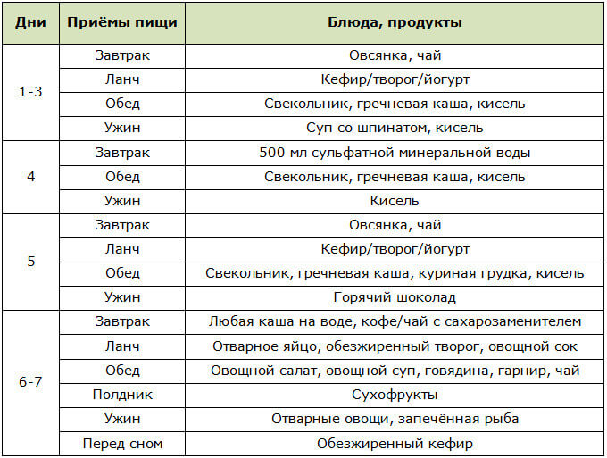 Первая неделя будет очищающей, поэтому здесь логичнее всего попить мочегонные и слабительные средства (травы и лекарства). Такую неделю можно устраивать раз в 2 месяца.