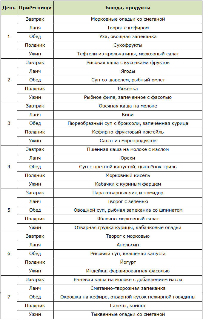 - Рекомендуемый способ приготовления — на пару. Жареное исключить или минимизировать.