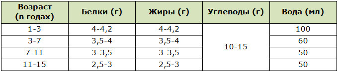 Суточная потребность детей (на 1 кг веса тела):