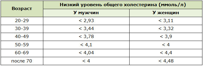 О низком холестероле говорят при следующих показателях анализа крови: