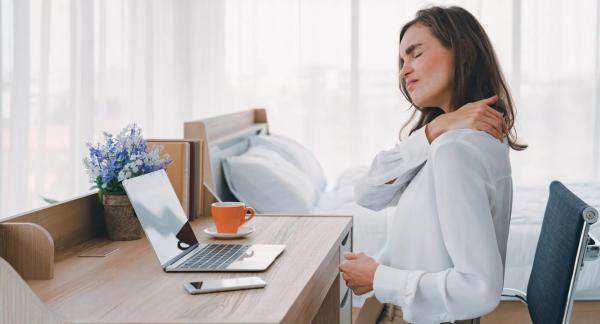 Старайтесь также избегать обездвиживания более получаса. Полчаса провели в одном положении — сделайте 2-3-минутную разминку (можно заблаговременно подготовить видео короткого комплекса упражнений при шейном остеохондрозе) и смените положения тела. Если вы стояли — сядьте, разомните ноги, плечи. Если сидели — встаньте, разомнитесь. После этого можно вернуться к рабочей нагрузке».